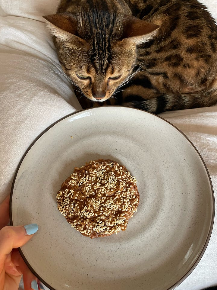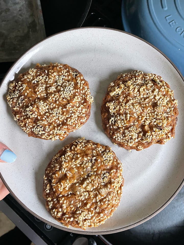 like everyone else, i’ve spent years trying to perfect my oatmeal cookie recipe, and this recipe puts my efforts to shame. no notes. i’ve also made it by browning 1/2 of the butter and toasting the oats for a deeper, nuttier flavour, but it’s honestly great as is. love having this in the freezer when i’m experiencing 3pm malaise. this time i toasted some sesame seeds and rolled the dough in them just before baking. (depends on your oven but for mine these need to be baked way longer than the recipe calls for - they will still be gooey when you take them out but they just need to cool for a few minutes)