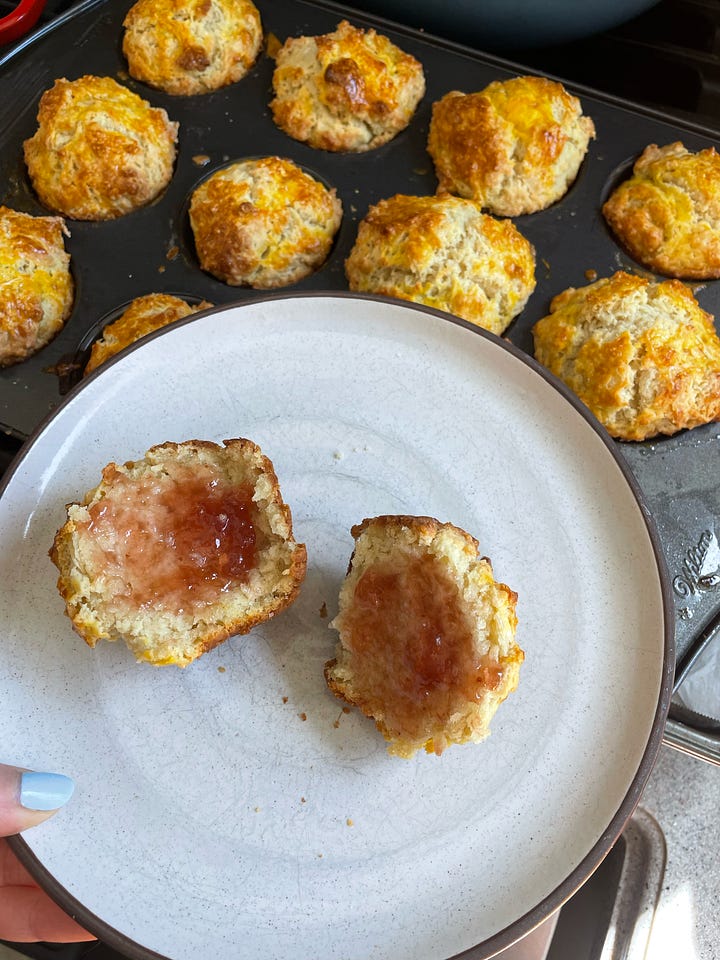 for months i’ve been seeing instagram reels (sorry!) about mary o’s irish soda bread shop in NYC, and if anyone is willing to host my boyfriend and i in august (wilco and bob dylan are on tour, which has basically been our main topic of conversation for a while) i might get to visit. this is nea arentzen’s copycat soda bread scone recipe, which is such a godsend and i’ve been making it on repeat. for years i was making this scone recipe from our old nyt cookbook, but they were… lacking. these are perfect, and you do have to make them in a muffin tin, and i just have a few notes: