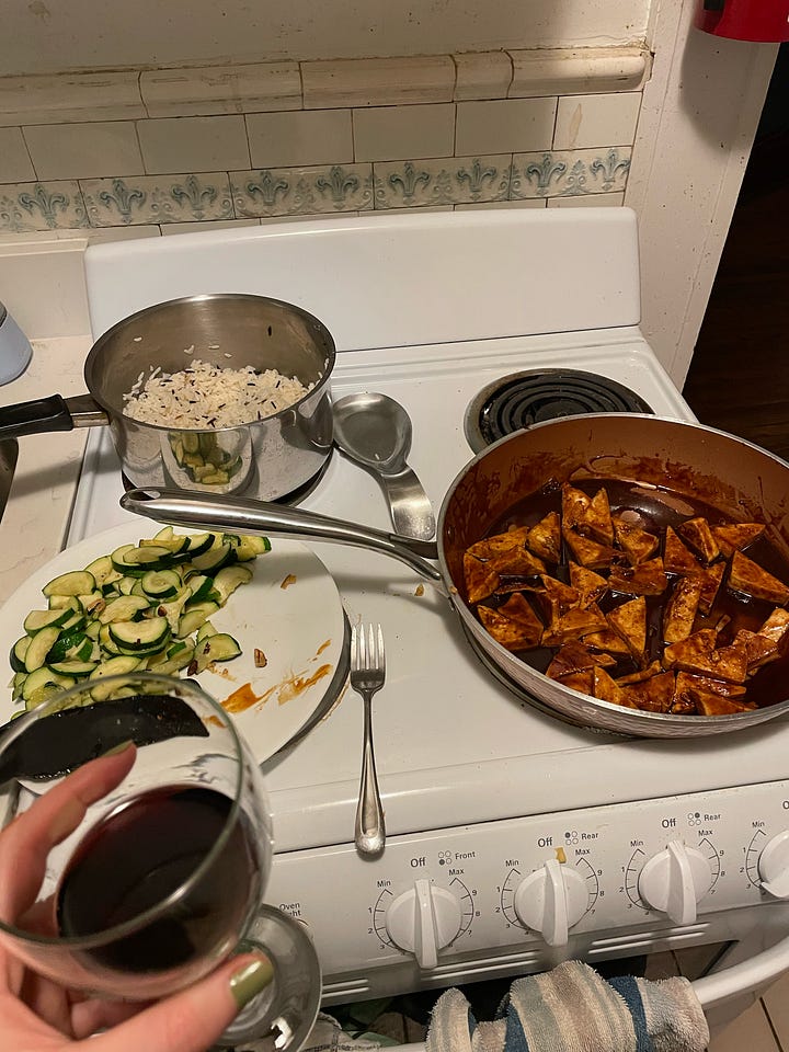 i was going to make this for my boyfriend’s birthday, but i always feel really guilty about cooking with meat in his apartment kitchen that he shares with 2 normal people, and he’s also more of a tofu kind of guy (NON-DEROGATORY)