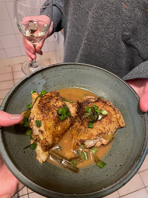 alison roman’s garlicky chicken thighs with scallion and lime (recipe) (archive link)